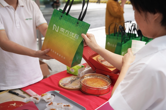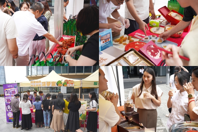 现场东说念主头攒动、吵杂杰出!除了荔枝品鉴区,南边优品在步履现场经心打发的广东性情联名产物的试吃区相通火爆杰出,湛江金谷月饼的酥香、新会益宝林陈皮的醇厚、茂名林尘无胶菠萝蜜的浓甜、肇庆蓝高恬蓝莓的透露,各色岭南风范争妍斗奇。东说念主们或弯腰仔细品味,或犀利相易心得,空气中交汇着甜香、果酸和陈皮的醇厚,处处飘溢着欢腾的氛围。